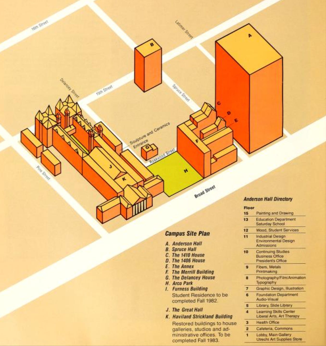So why did someone think those buildings were a gift from the City? Someone misinterpreted a 1994 confirmation deed to specify lot lines, registered with the City of Philadelphia. The deed was from the University to itself. I don’t know why this was done, but my guess would be that perhaps it was connected to the Philadelphia Orchestra’s 1988 purchase of the ARCO Park lot just north of the Haviland/Furness building. The ARCO Park site would eventually be covered over by the Kimmel Center.